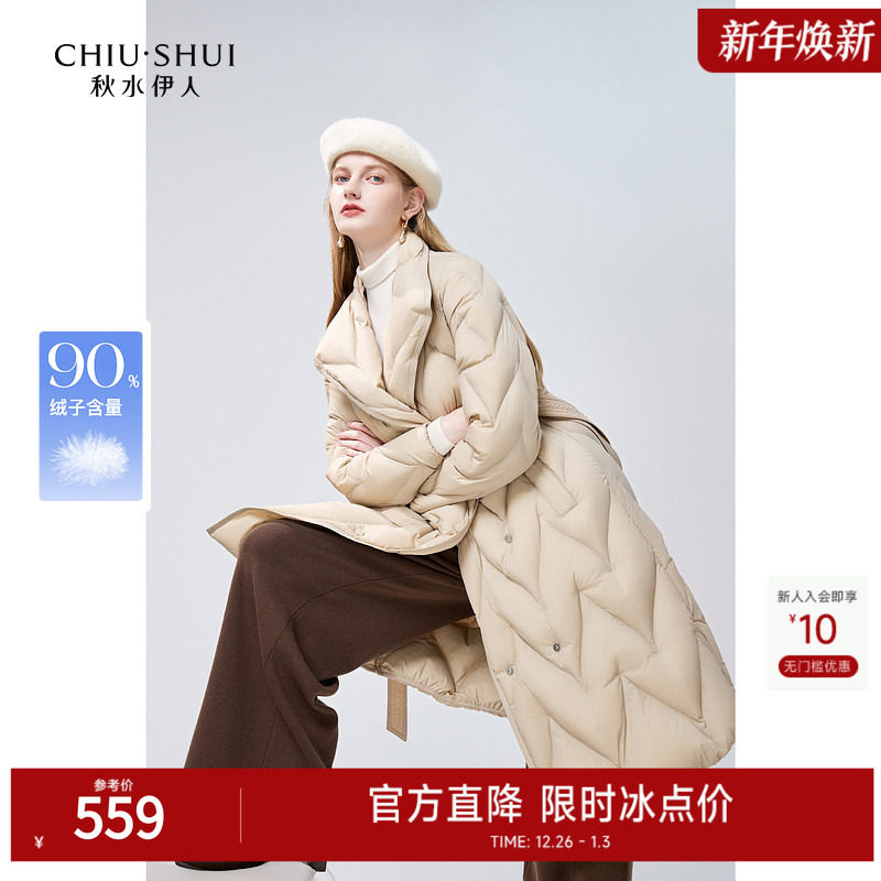 【90白鸭绒】秋水伊人高端气质中长款羽绒服2025冬新款女加厚外套