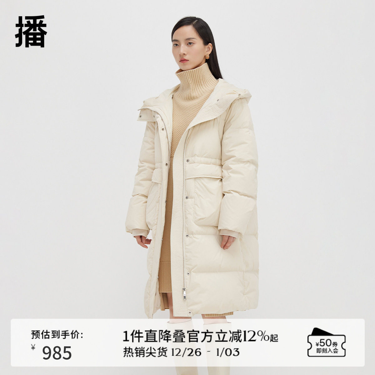 播商场同款保暖白鸭绒羽绒服女24冬新中长款宽松外套BDR4RD4119