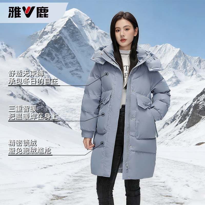 雅鹿羽绒服女中长款2025年冬季新款时尚加厚保暖白鸭绒连帽外套潮