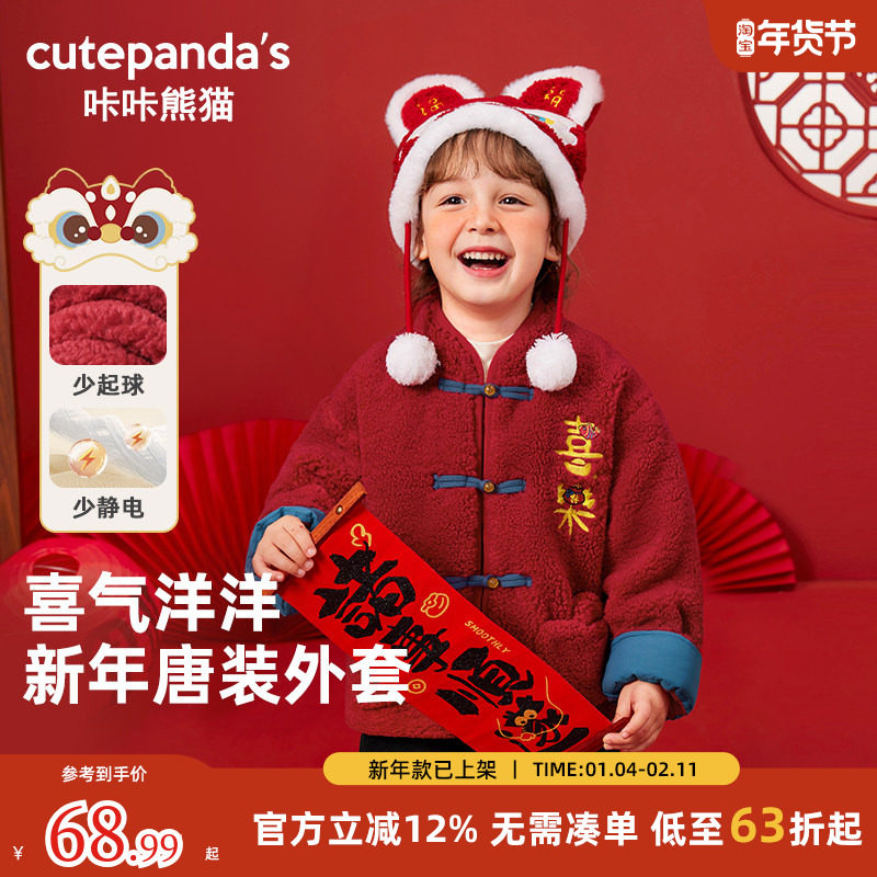 dudujia男童棉服红色儿童拜年服唐装宝宝棉袄喜庆女童童装冬季类