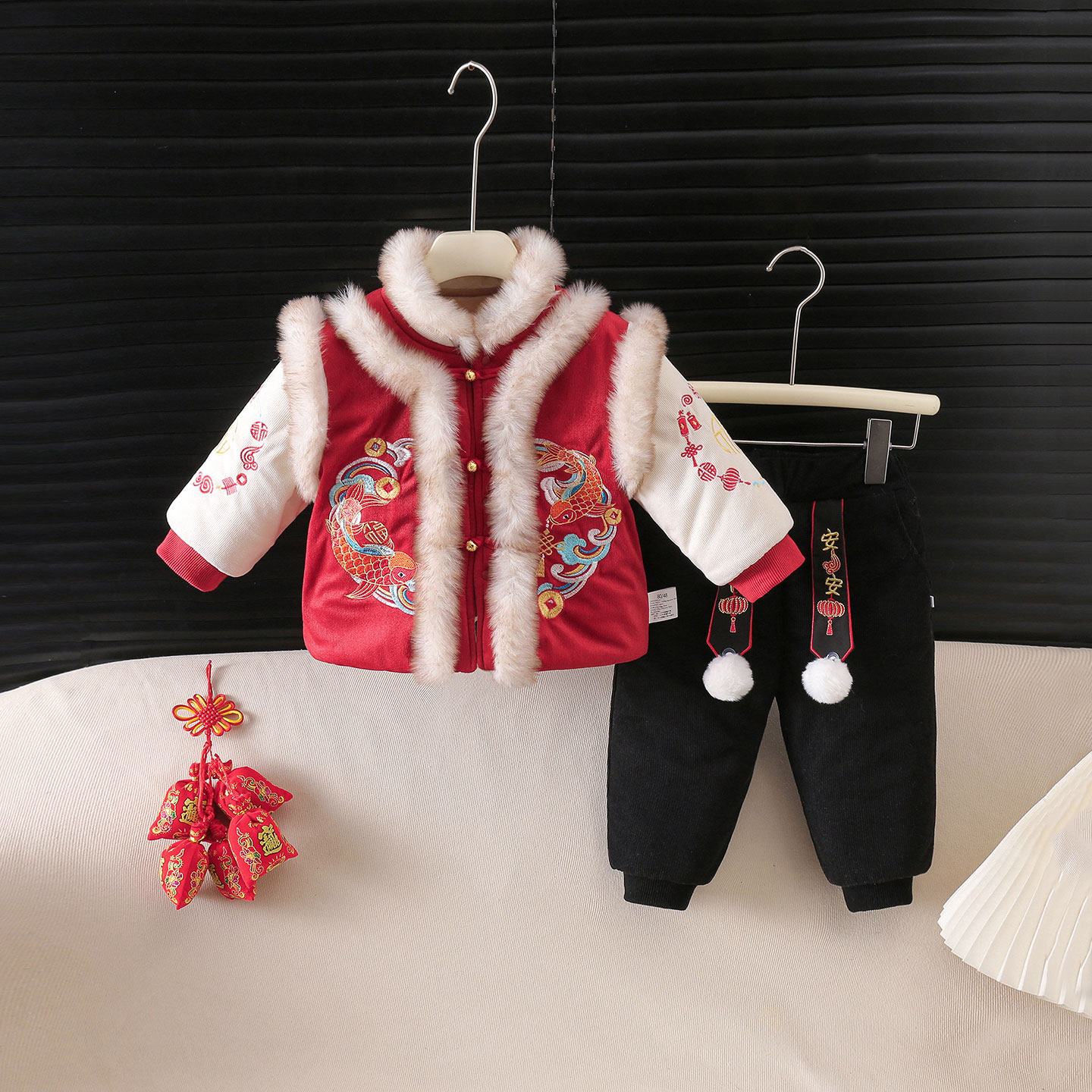 婴儿分体套装冬装加厚外穿新年衣服一岁宝宝冬季棉袄拜年服两件套