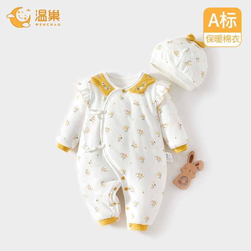 婧麒新生婴幼儿衣服保暖夹棉连体衣秋冬季宝宝棉服加厚冬季外出服