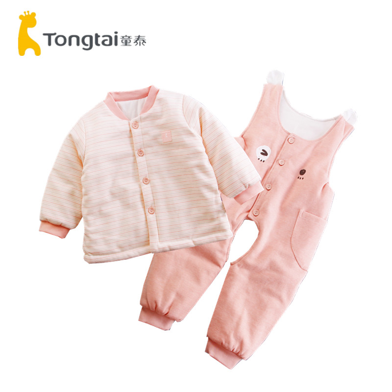 童泰婴儿棉衣套装秋冬薄棉夹棉5-24个月男女宝宝冬季棉袄背带棉裤