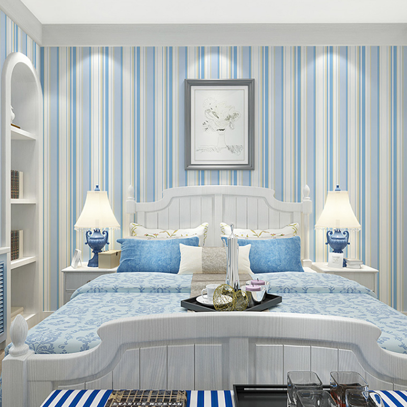 房间壁纸地中海风格墙纸男孩男生卧室英伦风儿童房现代简约竖条纹