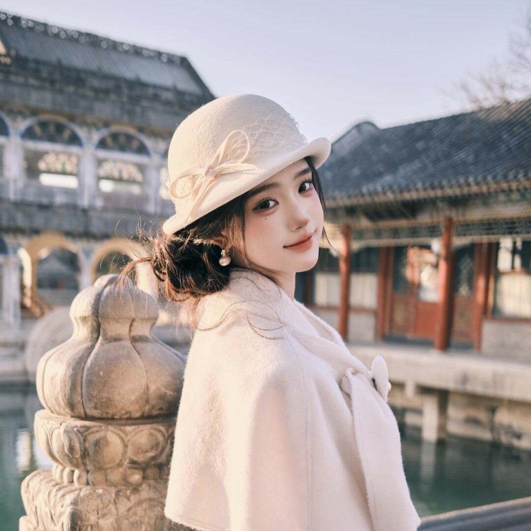 赫本风留洋小姐千金帽子女秋冬法式优雅气质羊毛呢礼帽白色渔夫帽