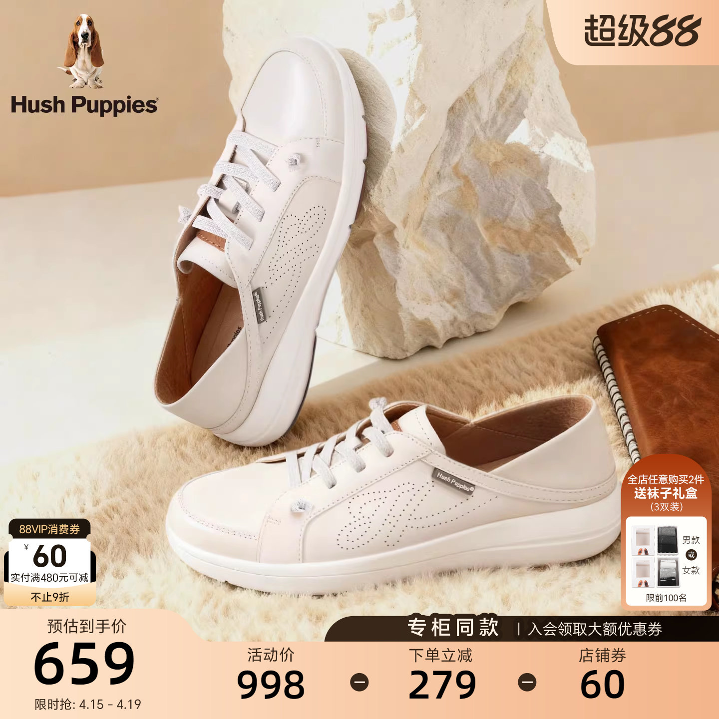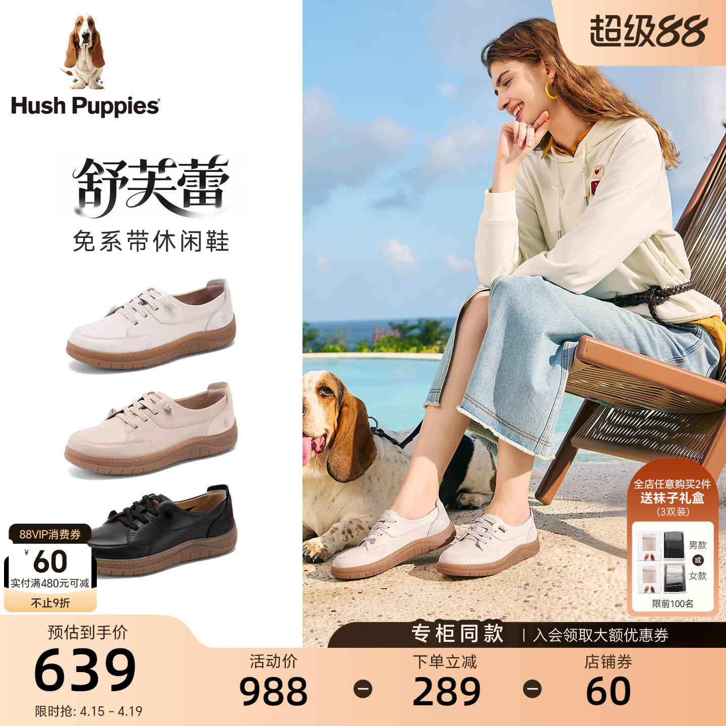 暇步士舒芙蕾免系带休闲鞋春夏新款女鞋真皮轻便透气一脚蹬小白鞋