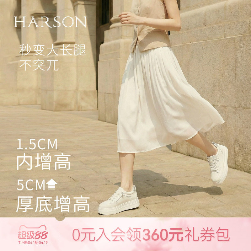 哈森简约风厚底小白鞋女系带百搭增高休闲板鞋2026新款HWCS260147