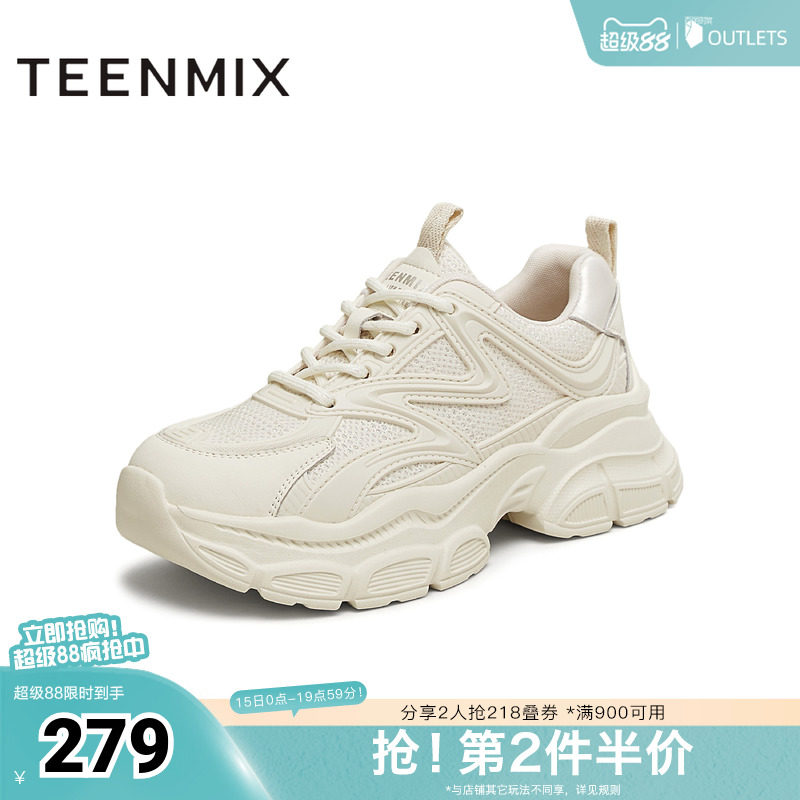 天美意复古厚底老爹鞋系带运动鞋女小白休闲鞋春季新款BK741AM5