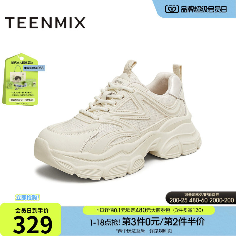 天美意复古厚底老爹鞋运动鞋女系带休闲小白鞋2026春新款BK933AM6