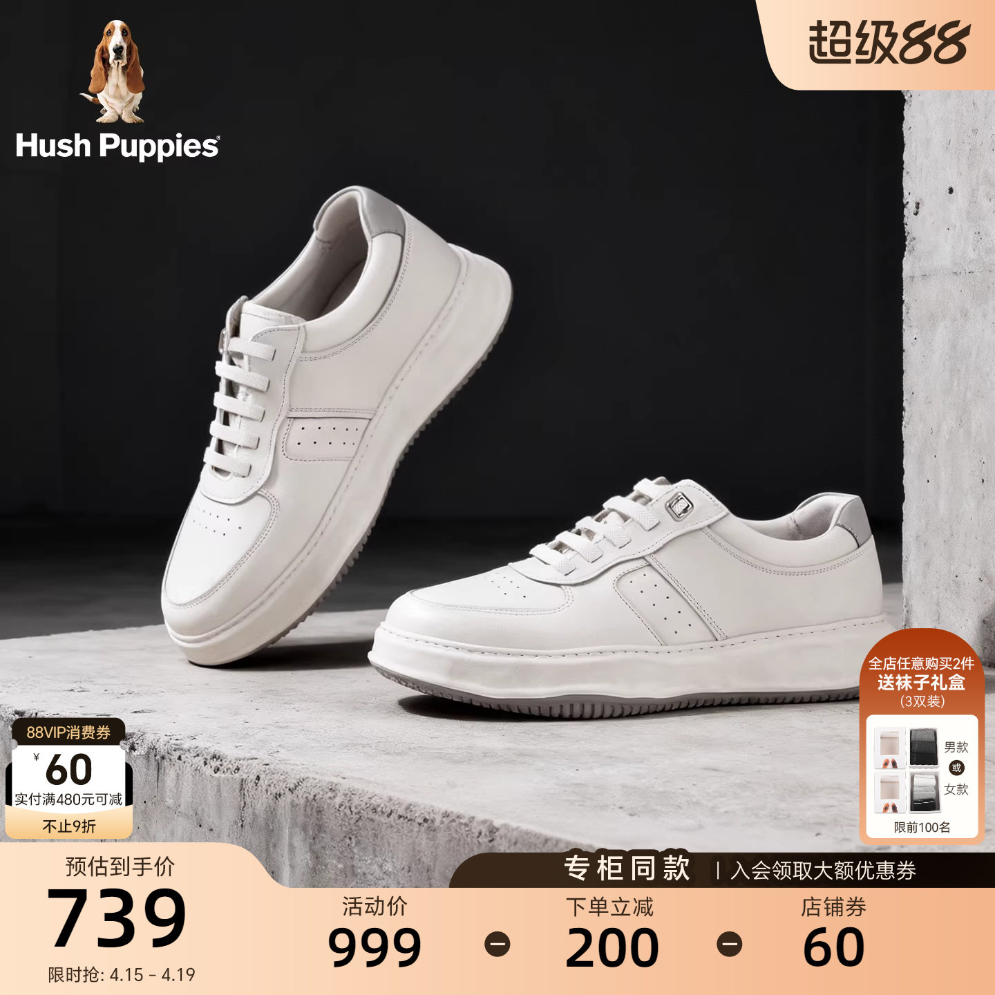 暇步士厚底增高板鞋春秋新款男鞋免系带通勤轻便小白鞋真皮休闲鞋