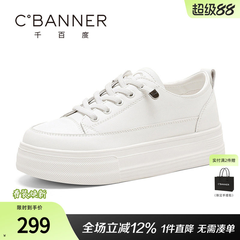 千百度小白鞋女新款厚底百搭纯色休闲板鞋免系带鞋子运动鞋平底鞋