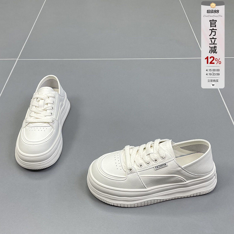 厚底板鞋女2026新款软皮系带简约学院风休闲鞋百搭小白鞋轻便防滑