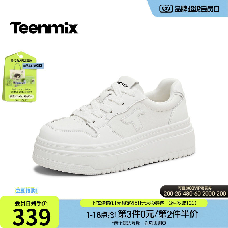 天美意厚底增高小白鞋运动板鞋女系带休闲鞋2026春季新款KB106AM6
