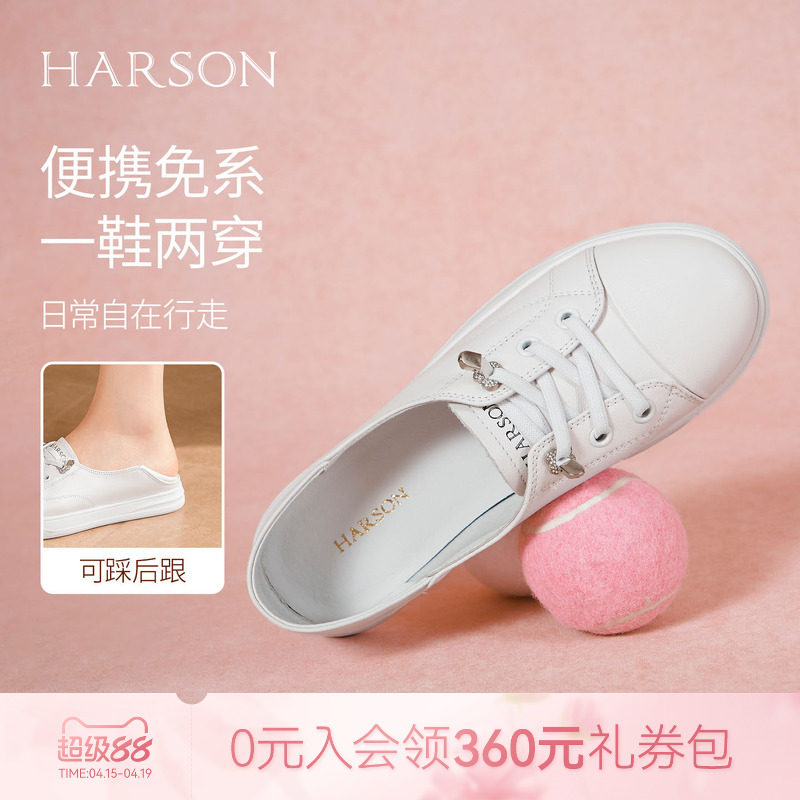 哈森薄底小白鞋女春款透气免系带软皮休闲百搭护士鞋HWCS260135