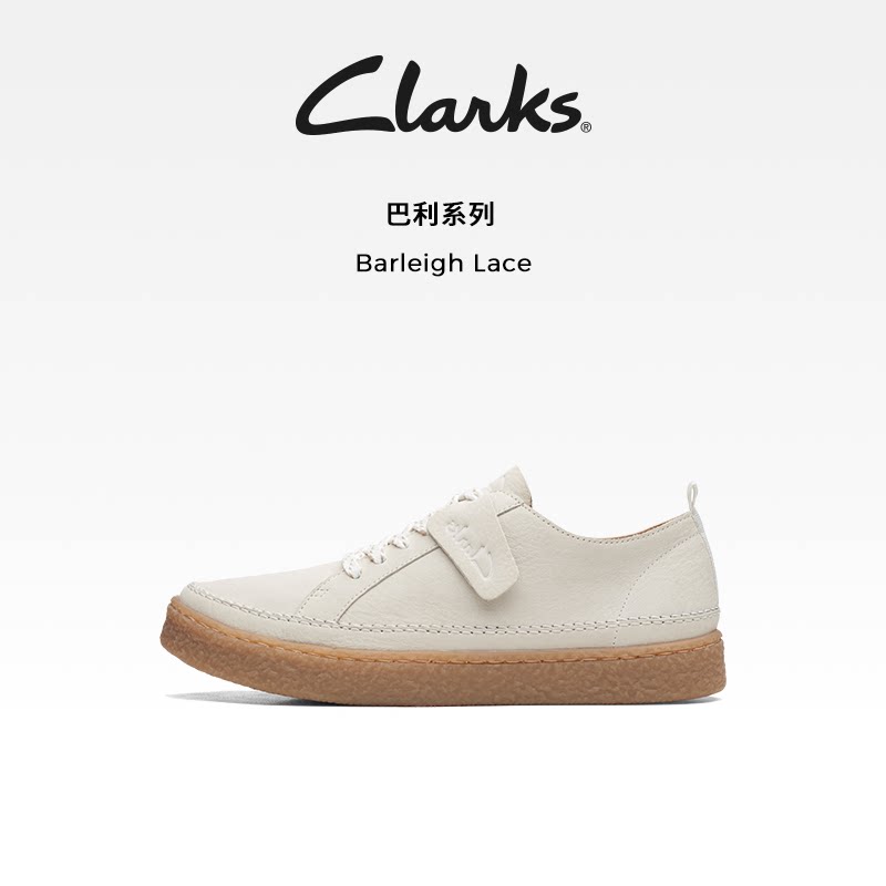 Clarks其乐Barleigh Lace小白鞋简约低帮系带一脚蹬休闲板鞋女