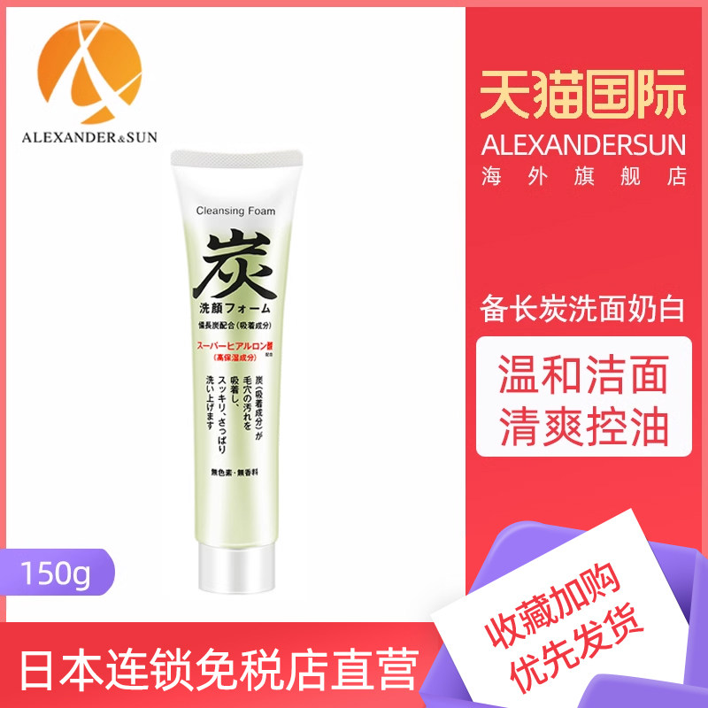 日本Face Wash备长炭男士洗面奶深层清洁150g补水去污泡沫洁面乳
