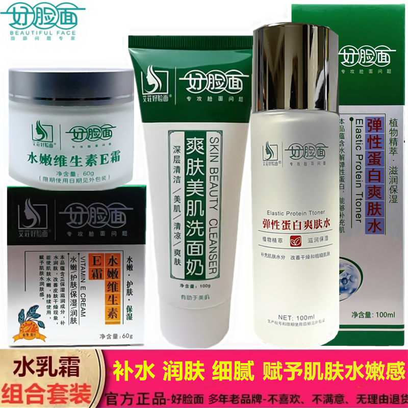 艾莊好脸面水嫩维生素E霜 好脸面弹性蛋白爽肤水好脸面美肌洗面奶