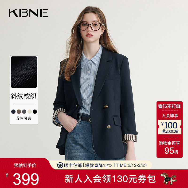 KBNE藏青色休闲西装外套女装2026春季新款长袖西服小个子上衣气质