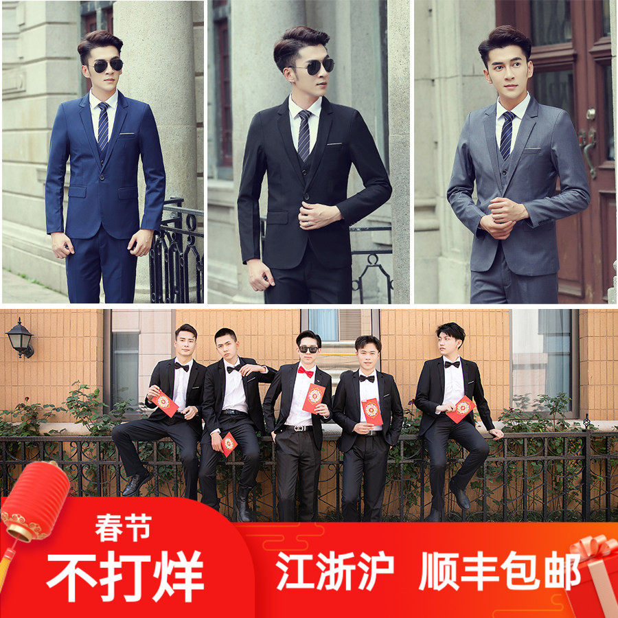 出租西服租赁小西装男套装兄弟团伴郎服新郎结婚礼服韩版修身学生
