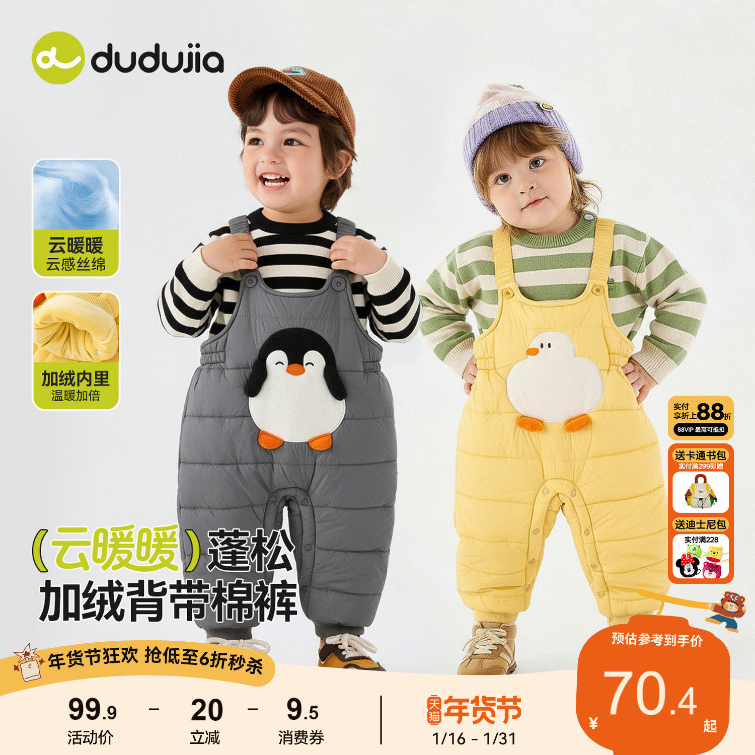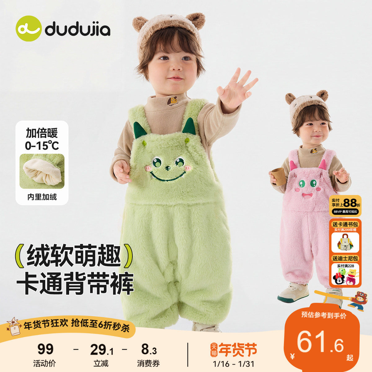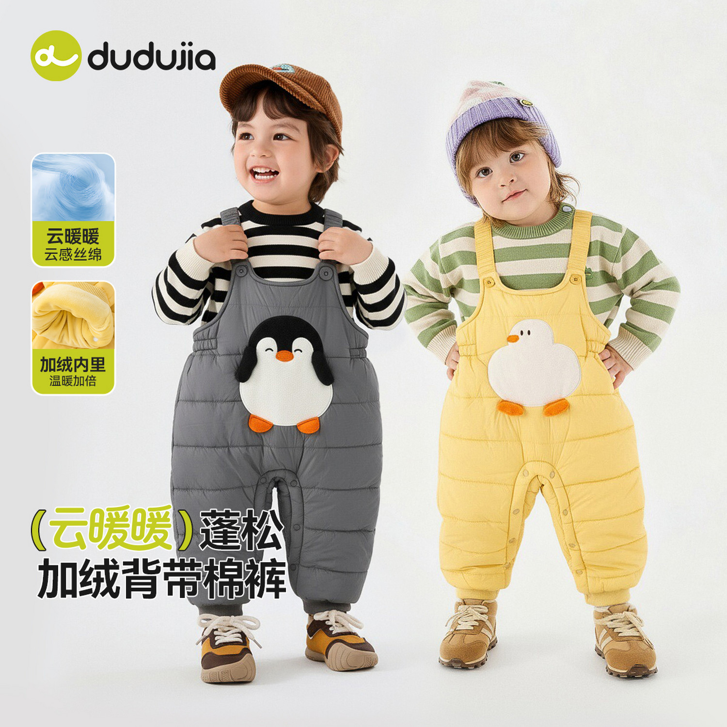 dudujia宝宝裤子冬季男童加绒背带裤女童加厚休闲裤冬款儿童长裤