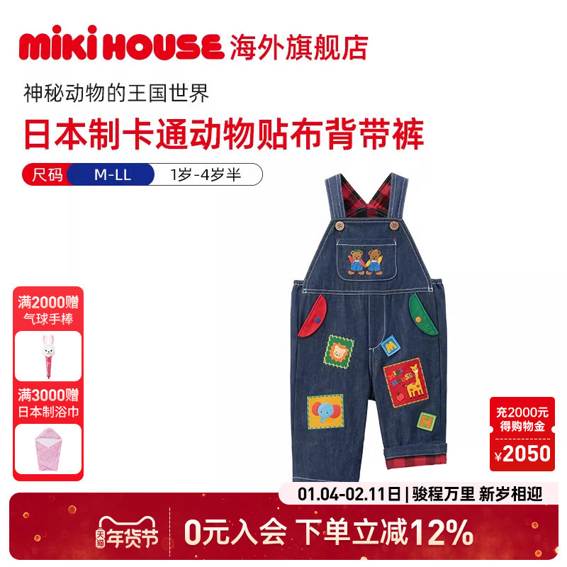 MIKIHOUSE日本制背带裤女童裤子男童裤子刺绣背带裤动物王国