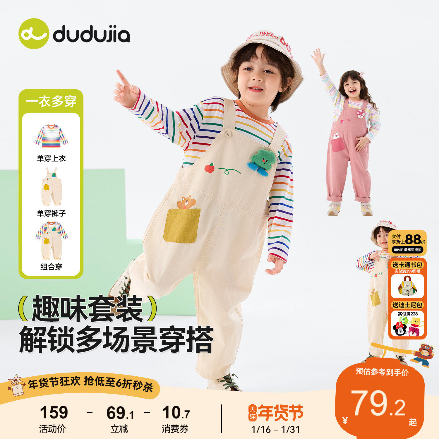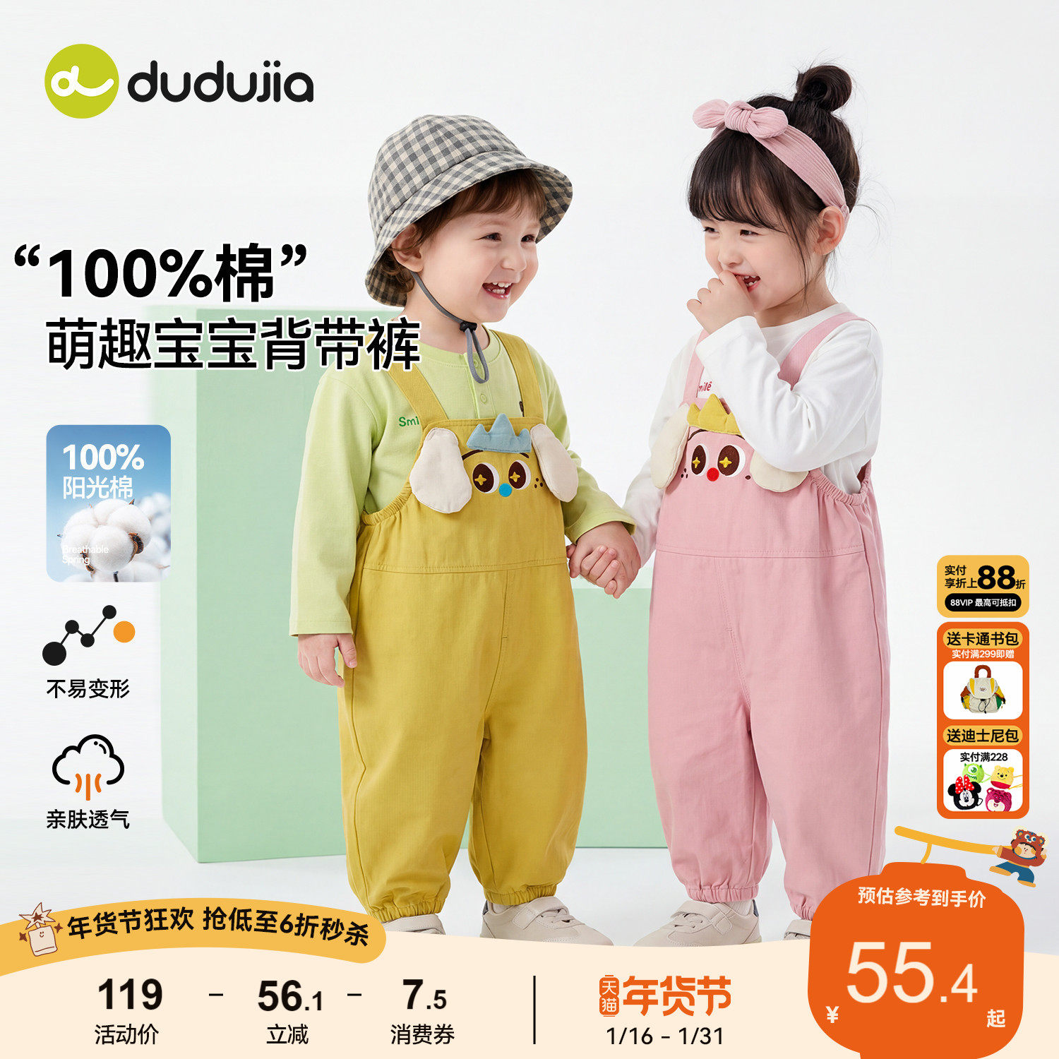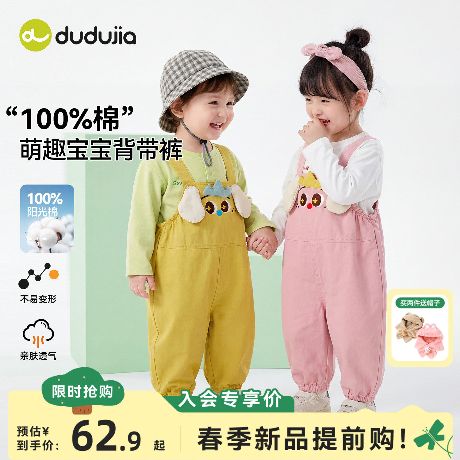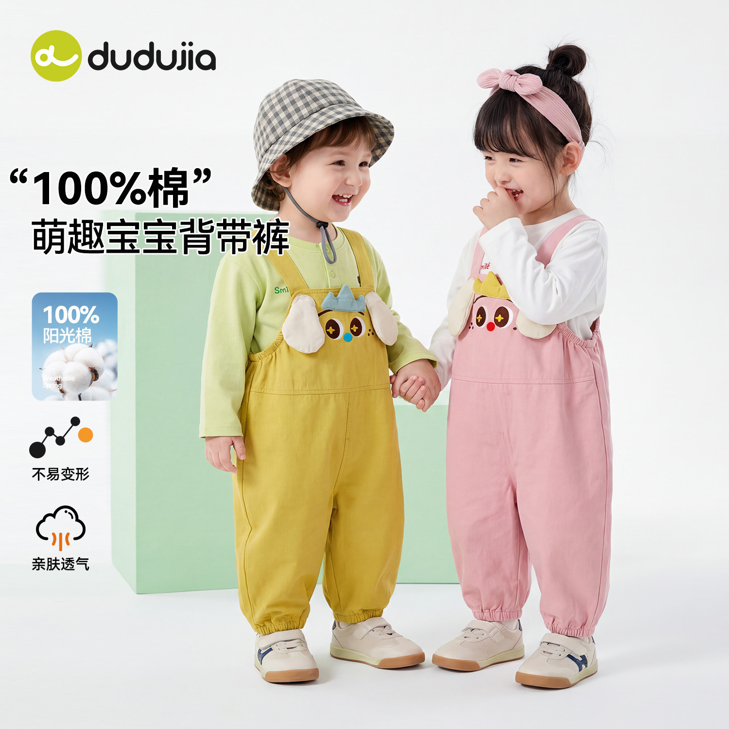 【纯棉】dudujia宝宝裤子春男童背带裤女童休闲长裤儿童可爱春装