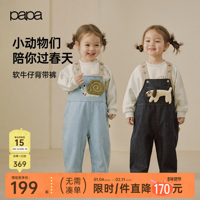 【新品】papa爬爬春季儿童牛仔背带裤子宝宝男女童百搭可爱2026