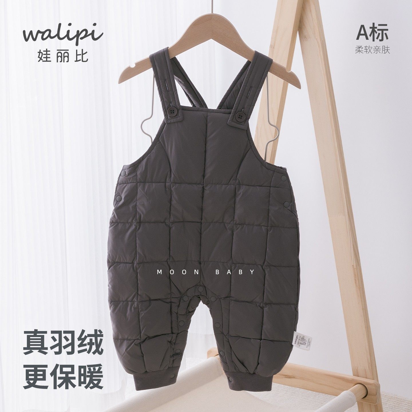 羽绒背带裤女童男童宝宝加厚棉裤春秋冬季保暖新款娃丽比外穿锦纶