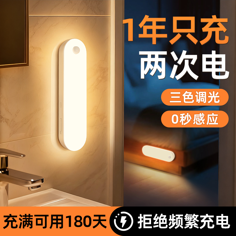 人体自动感应灯小夜灯卧室床头充电人来即亮厕所楼梯夜灯睡眠夜间