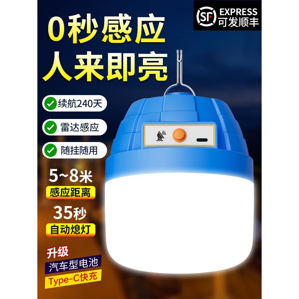 雷达智能夜间自动感应灯人体红外超长续航大容量充电灯泡过道楼梯