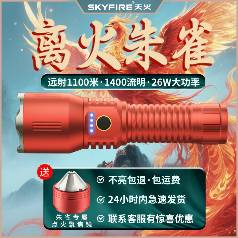 天火2025新款朱雀白激光强光超亮手电筒户外聚光远射大功率充电灯