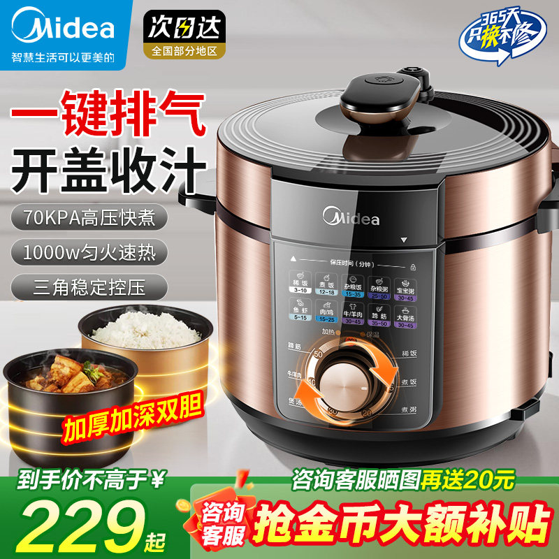 美的电压力锅家用5升大容量双胆高压锅全自动多功能饭煲官方正品
