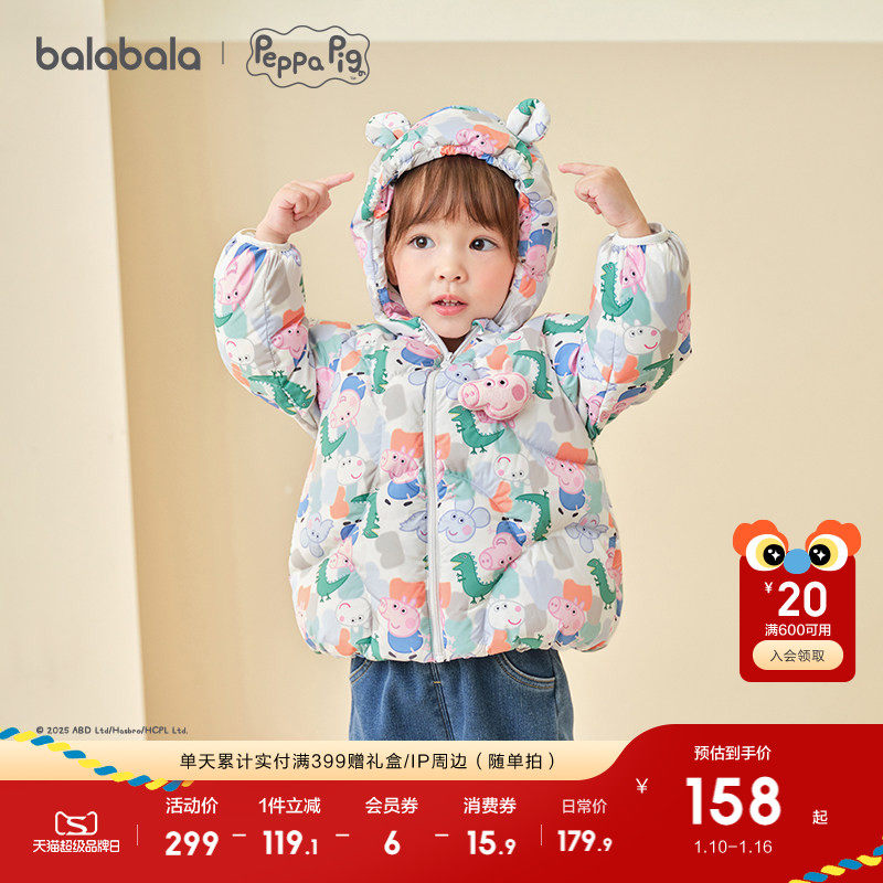 巴拉巴拉宝宝羽绒服男童外套女童秋冬装2025新款婴儿衣服动物造型