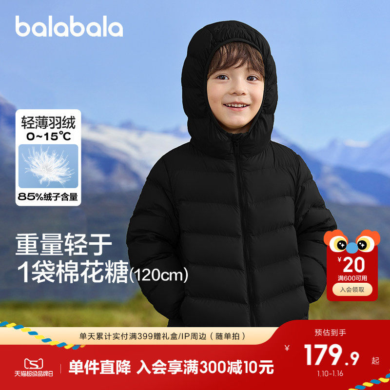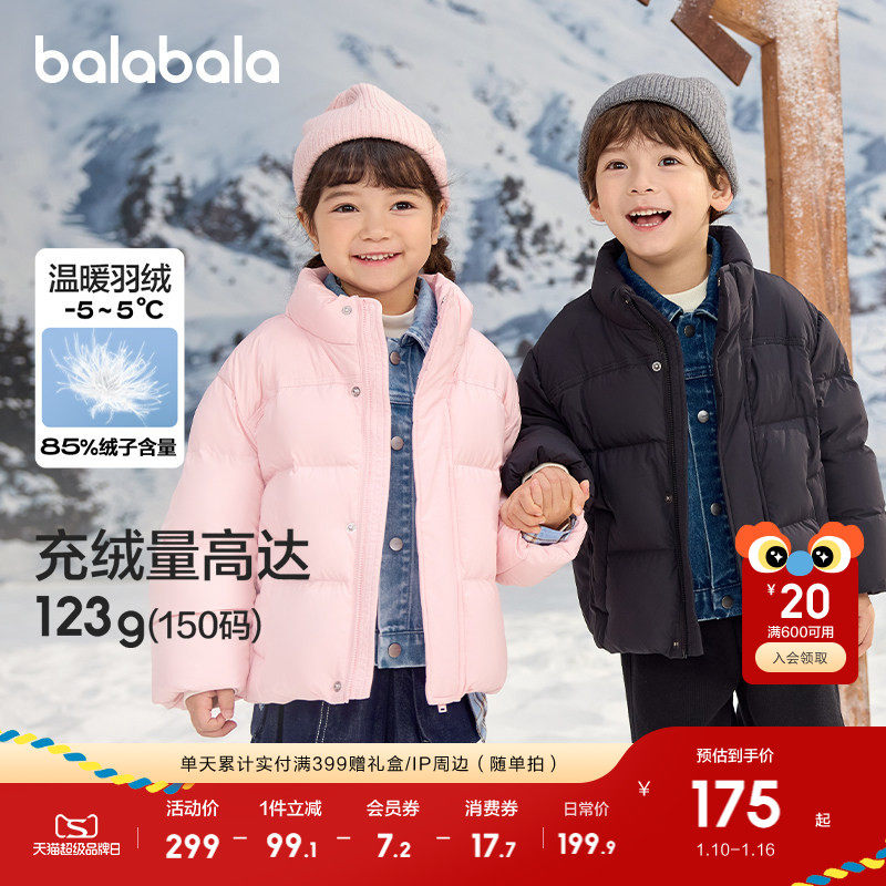 巴拉巴拉儿童羽绒服轻薄男童女童25新款冬装宝宝上衣外套可爱童装