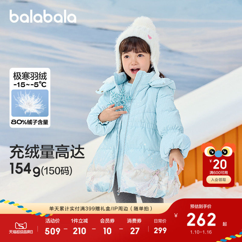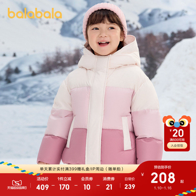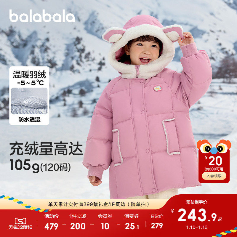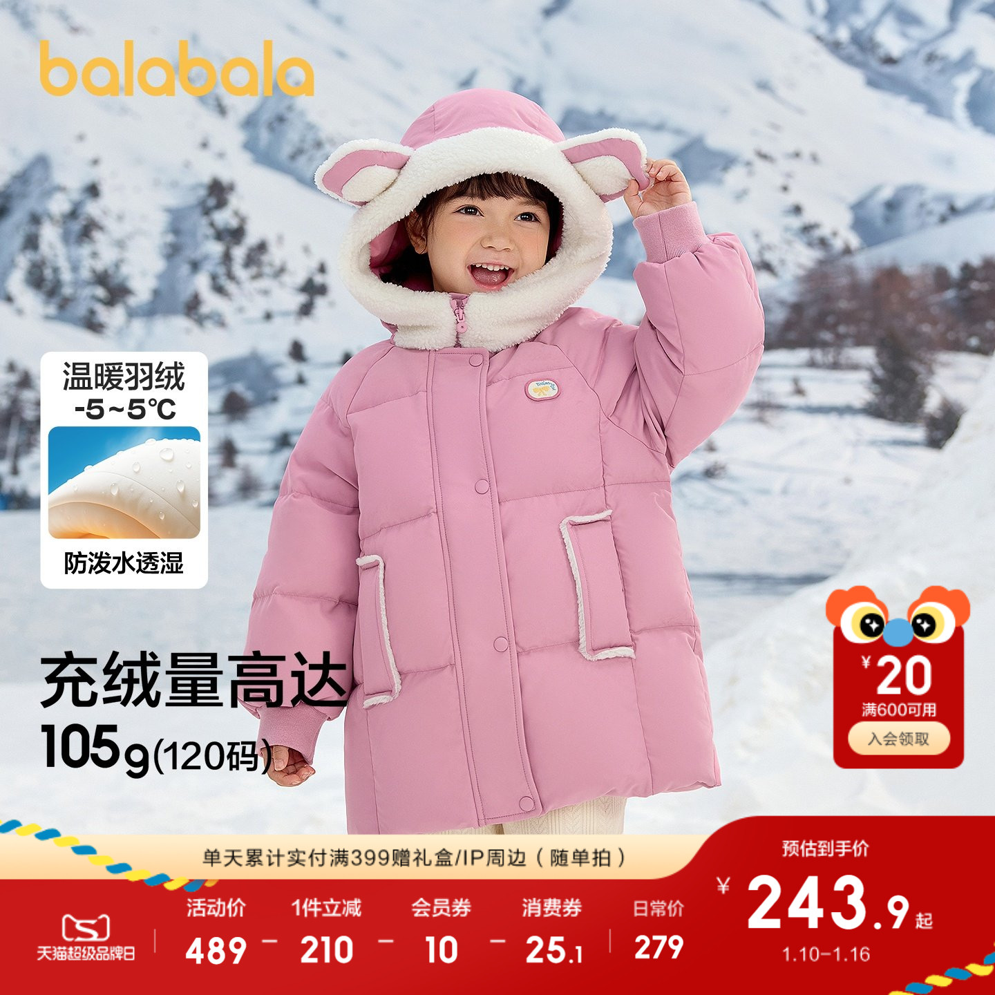 巴拉巴拉童装儿童羽绒服女童冬装连帽外套甜美萌舒适户外潮中长款