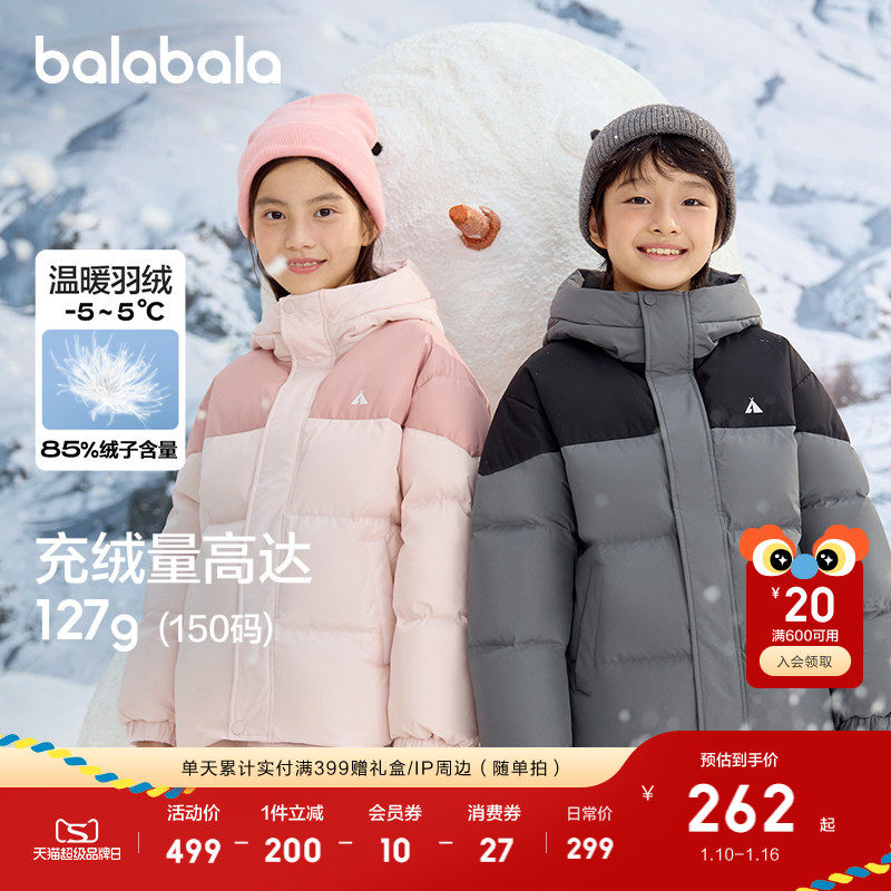 巴拉巴拉童装儿童羽绒服男女童冬装保暖拼接外套上衣舒适户外潮款