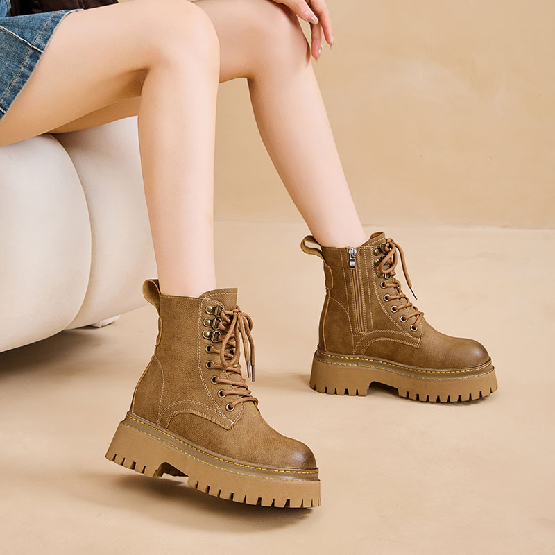 2025秋季新款英伦风马丁靴女透气时尚圆头系带防滑休闲机车靴女靴
