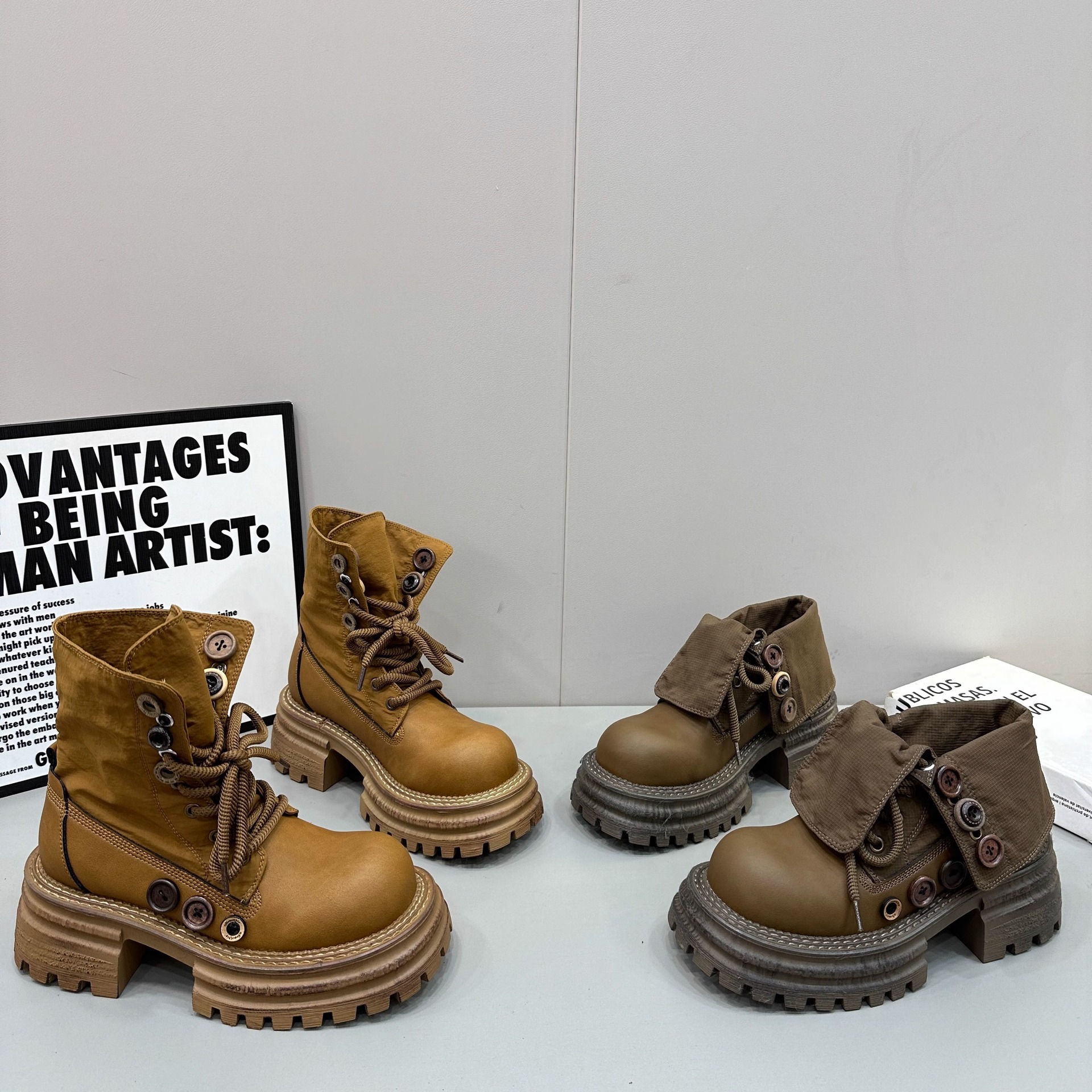 骆驼山越马丁靴女鞋2025秋新款英伦风时装靴登山工装靴厚底大黄靴