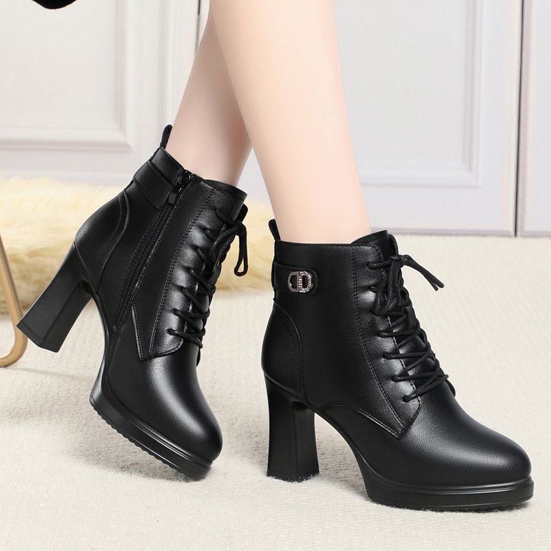 2025秋冬新款英伦风马丁靴女真皮粗跟短靴舒适工作轻便软底妈妈鞋