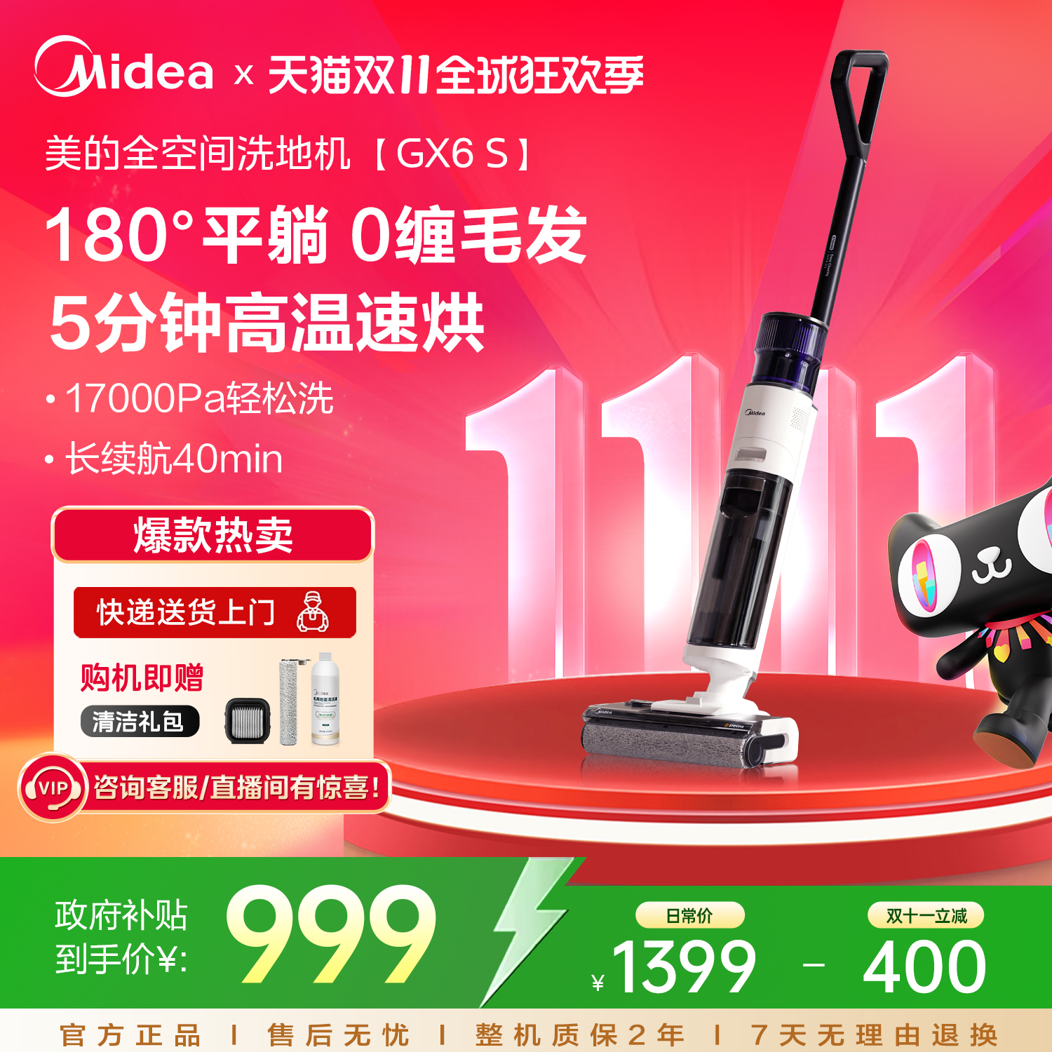 【补贴15%】美的洗地机GX6S家用躺平防缠拖地扫地一体机自动清洗