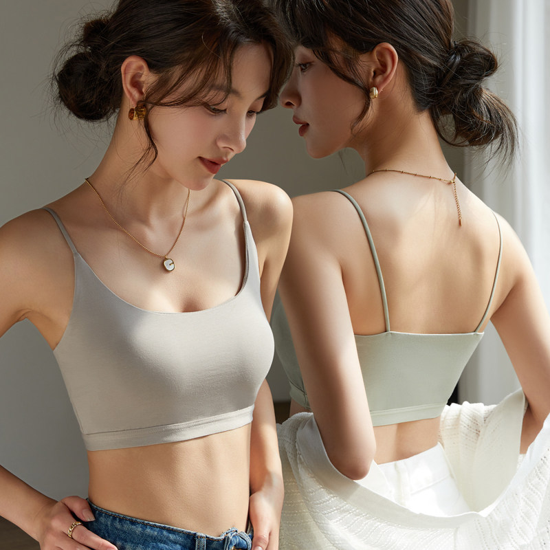 无钢圈女士吊带背心胸垫抹胸露背内衣一片式文胸中老年妈妈莫代尔