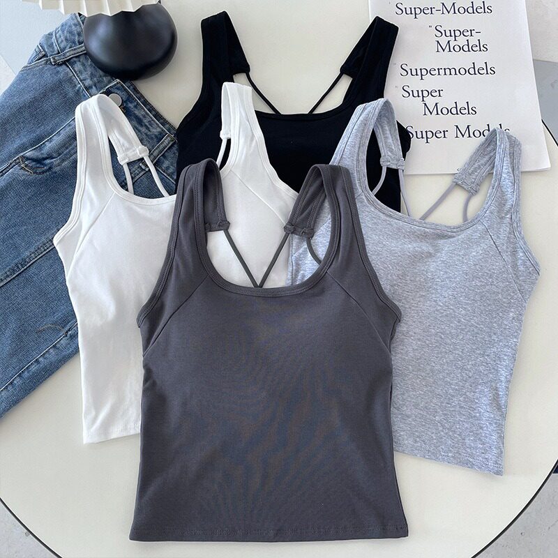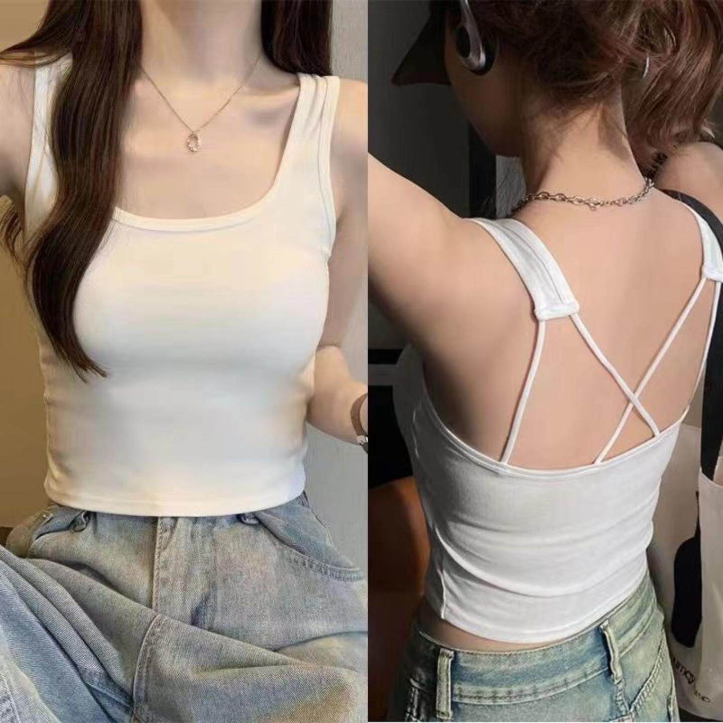 自留~纯欲性感带胸垫吊带背心内搭外穿美背抹胸露背打底内衣2023