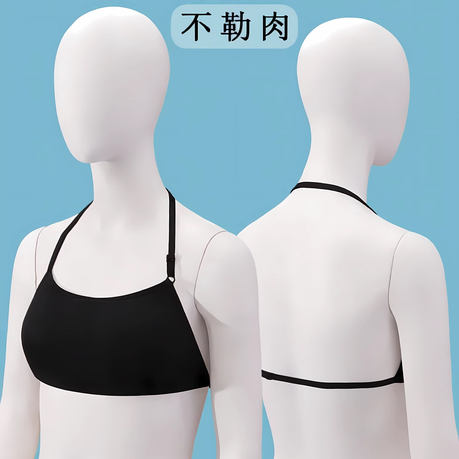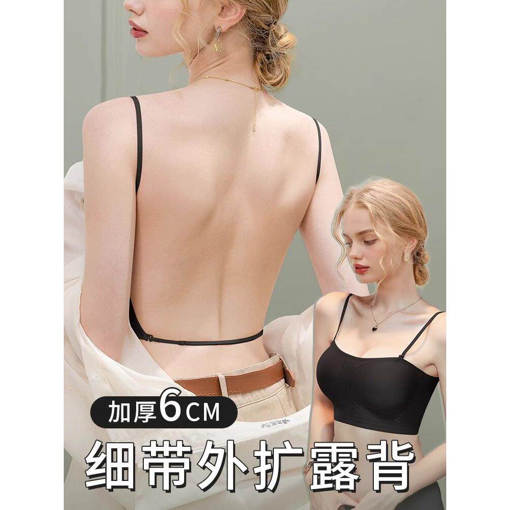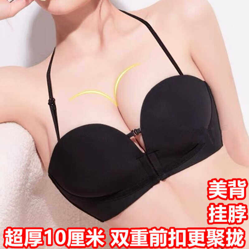 超厚10CM挂脖式内衣美背小胸聚拢隐形抹胸露背吊带文胸一体固定杯