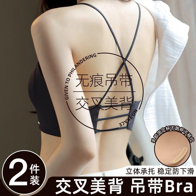 美背内衣女聚拢小胸吊带可外穿细肩带裹胸交叉露背无痕抹胸文胸薄