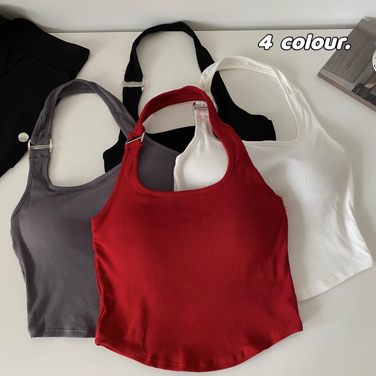 纯欲辣妹u领挂脖红色吊带背心女夏季短款外穿设计感抹胸露背上衣