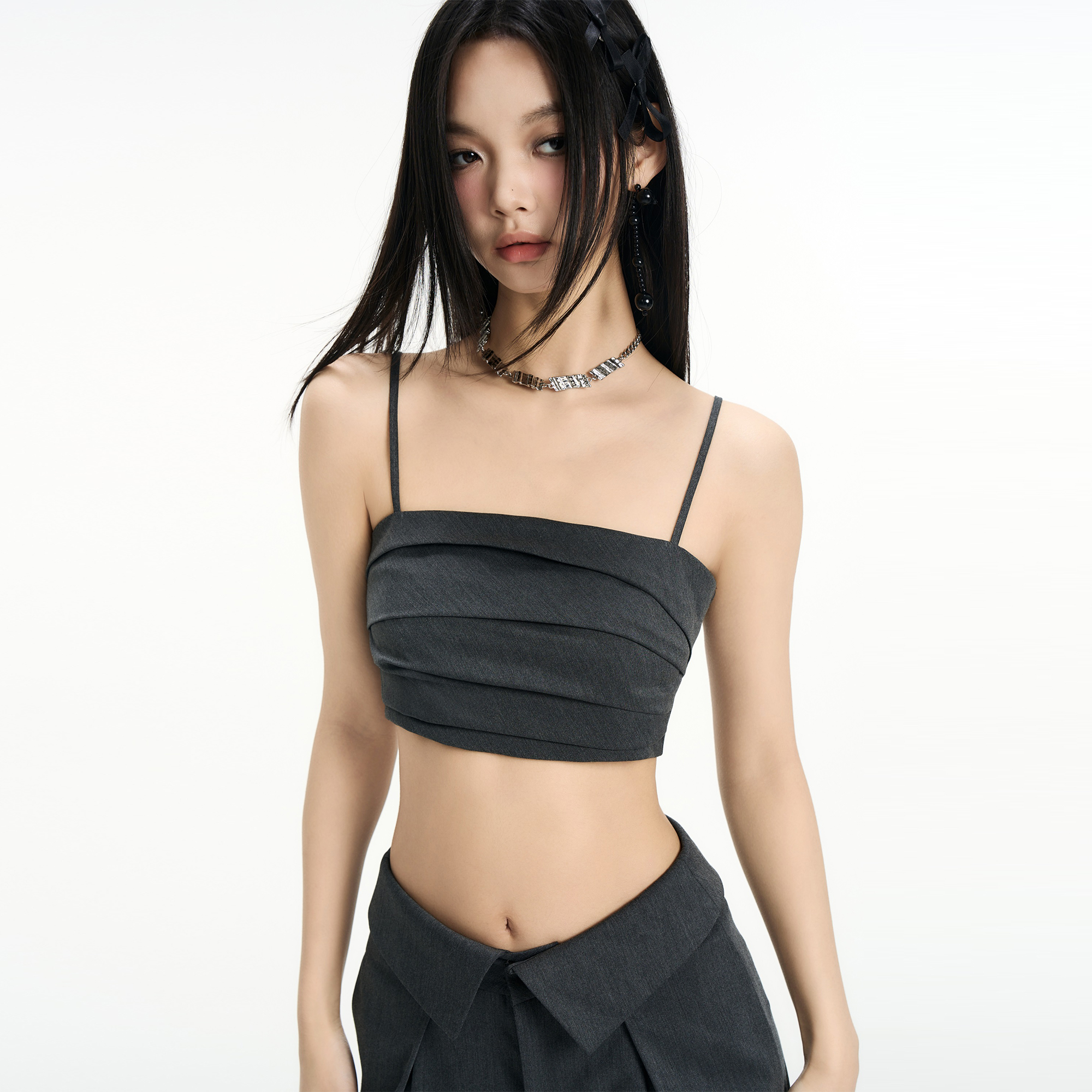 IUNAE LUMEN 25年早春夏新款 高级感灰色褶纹抹胸露背吊带背心