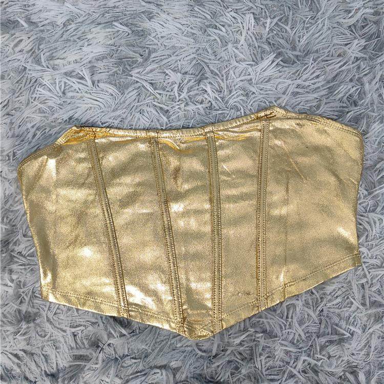 欧洲站高腰女神街头个性百搭紧身显身材黄金耀眼主角抹胸露背胸衣