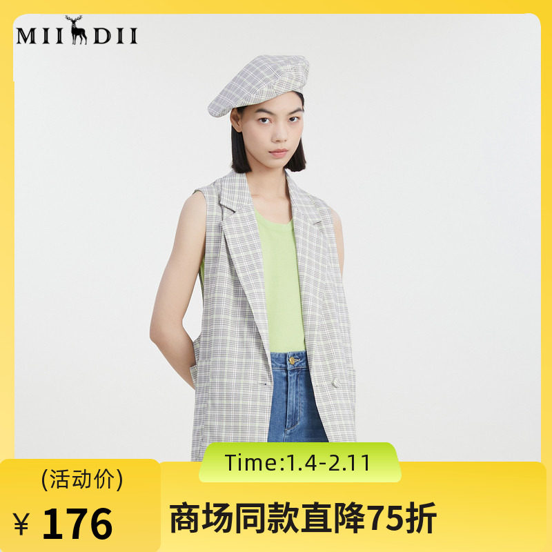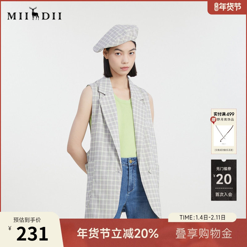 谜底中长款西装马甲女夏季新款复古格纹一粒扣马夹232MM0574