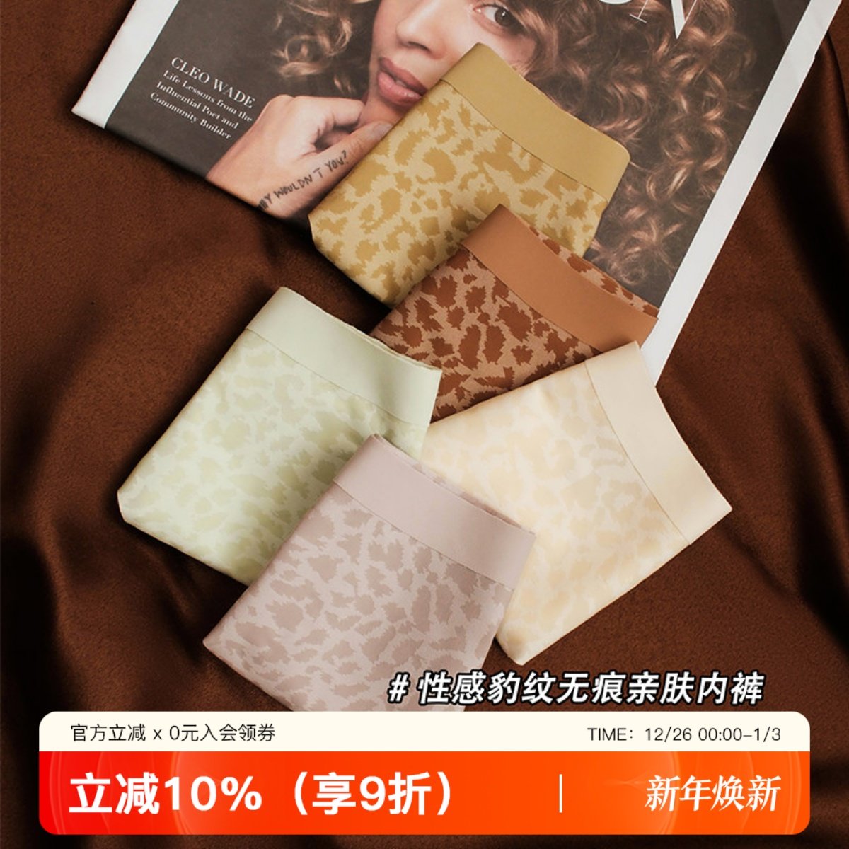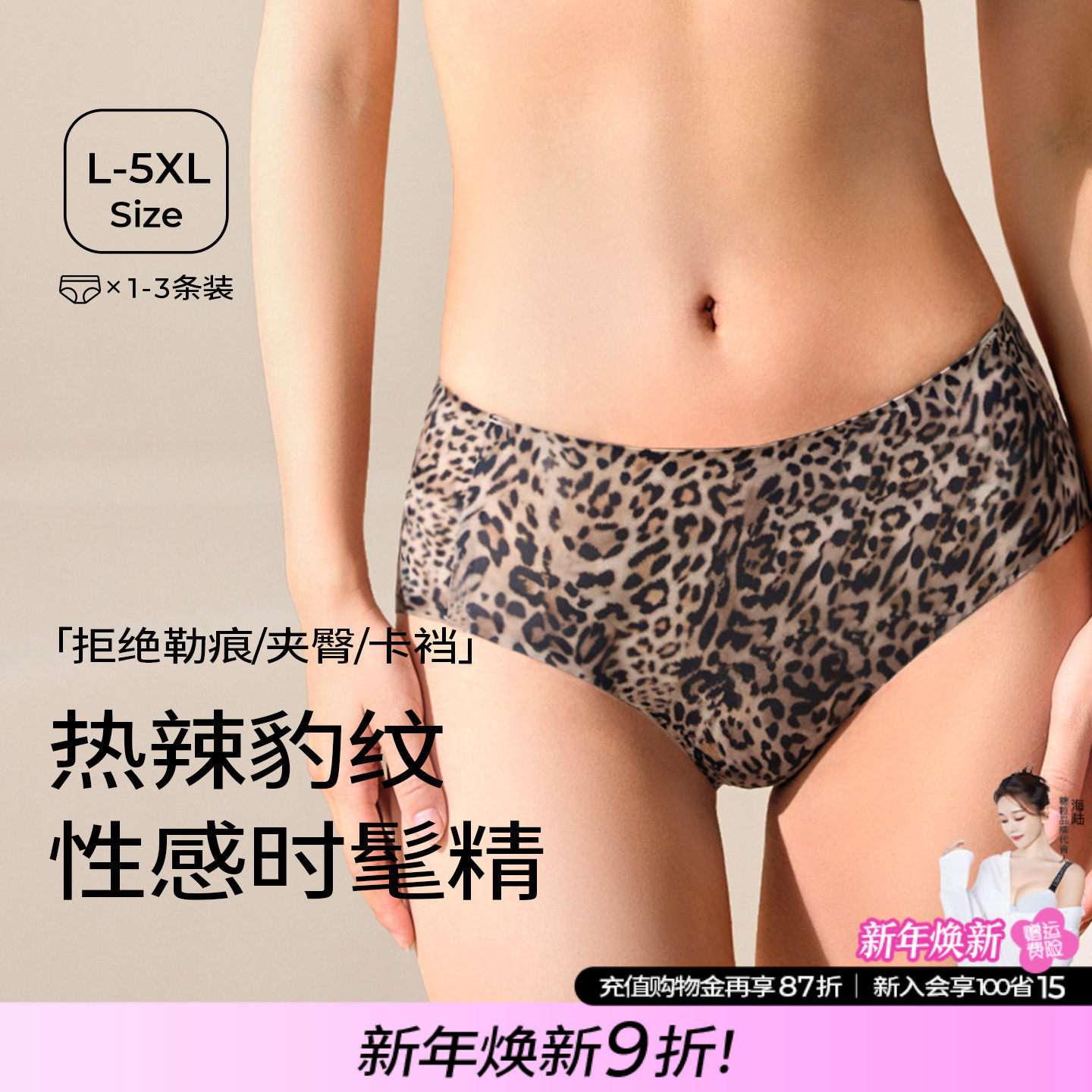 裸感无痕性感豹纹内裤女亲肤透气不夹臀不卷边中腰女神三角裤短裤