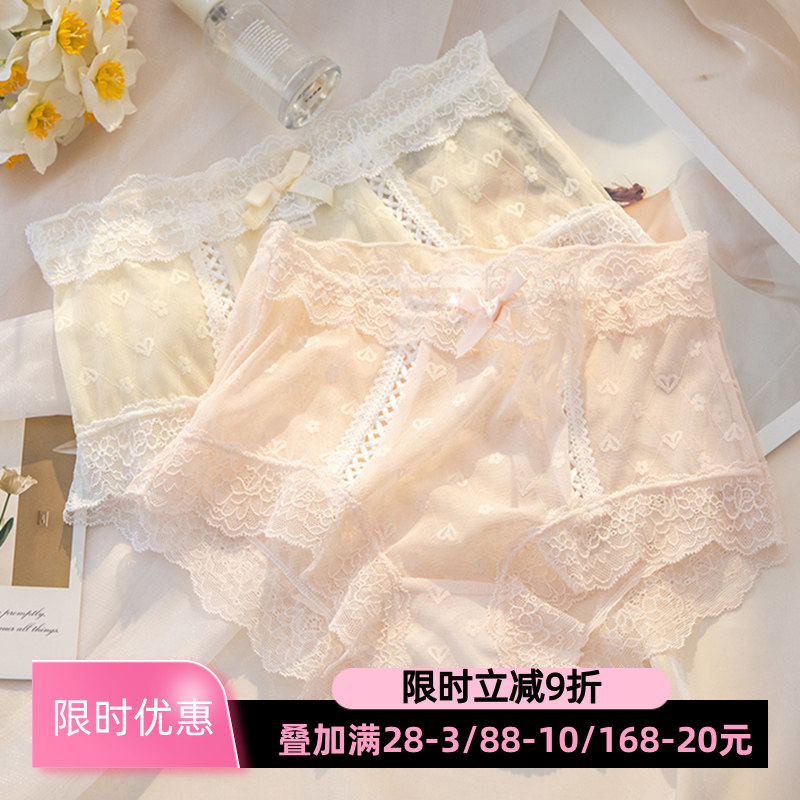 新款法式性感蕾丝内裤女无痕大码棉质裆中腰亲肤透气女士透明裤头